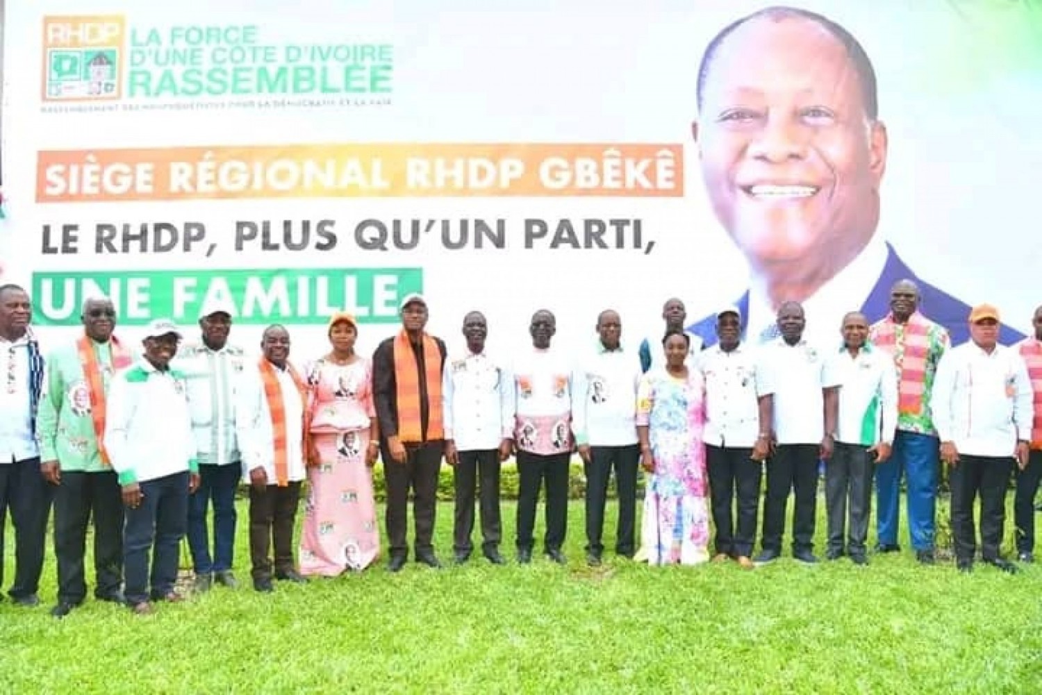 Ici, dans le Gbêkê, le RHDP n'a pas d'adversaires, car le Président Alassane Ouattara lui-même a déjà battu notre campagne, au regard des nombreux investissements réalisés pour le compte de nos populations (...) Le danger pourrait seulement venir de notre propre camp si nous ne sommes pas unis et cela n'est ni souhaité par le Président de la République, ni par nous-mêmes qui avons intérêt à remporter ces joutes électorales pour que le Président Ouattara soit fier du dynamisme de notre Parti dans le Gbêkê...» a indiqué le candidat au scrutin régional dans le Gbêkê Assahoré Konan Jacques qui a appelé les membres de sa famille politique « à la cohésion et à l’union autour de notre objectif commun : faire du RHDP le Parti majoritaire dans le Gbêkê dès aujourd’hui et tout au long des décennies à venir.»