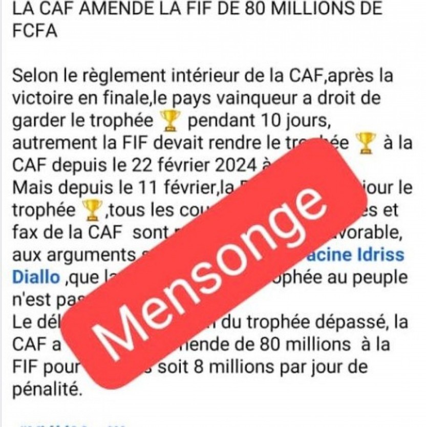 Côte d'Ivoire : « Infox » sur le trophée de la CAN faisant croire que la CAF « amende la FIF de 80 millions FCFA », mais Jusqu'où iront les détracteurs d'Idriss Yacine Diallo ?