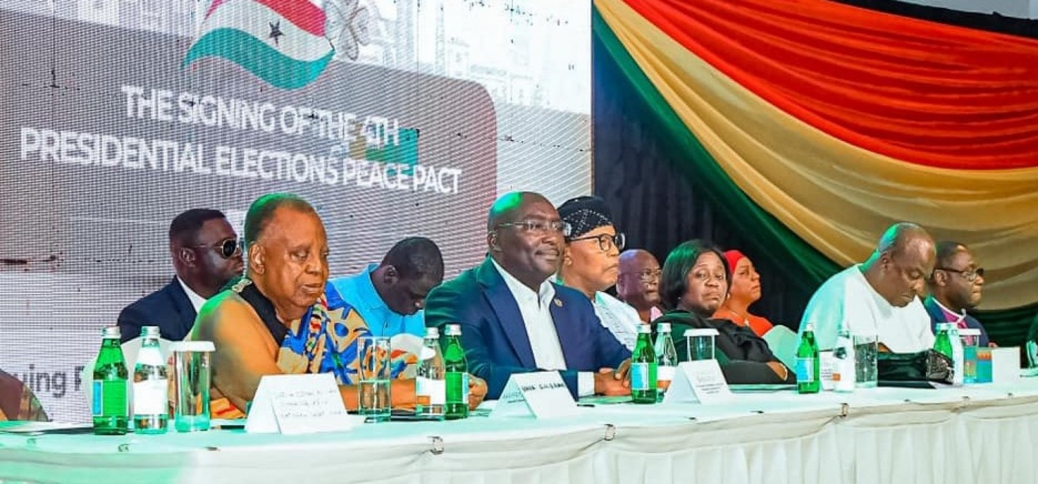 Le quatrième pacte de paix, qui est initié par le Conseil national pour la paix et l'Institut pour la gouvernance démocratique (IDEG), a été signé le jeudi 28 novembre 2024 à Accra en présence de huit des 12 candidats et de quatre représentants.