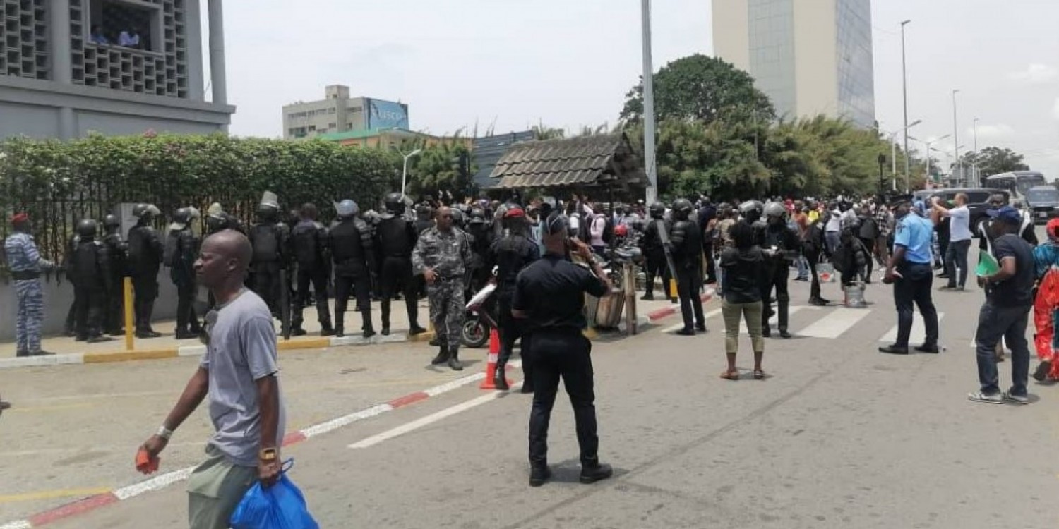 Ils se dirigeaient vers le tribunal où un impressionnant dispositif sécuritaire a été déployé pour sécuriser la tenue de l'audience en référé quand ils ont été refoulés par les forces de la Police nationale.