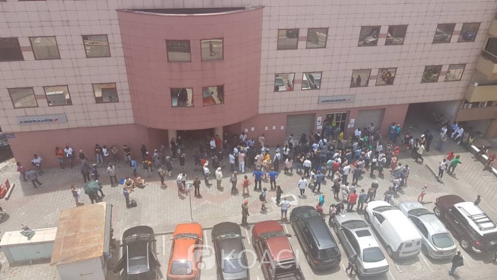 Rassemblement de français sans respect des mesures préventives devant l'agence Air France spécialement ouverte à Abidjan ce dimanche matin à 11HTU (ph KOACI)