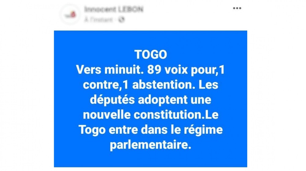 Les députés togolais ont voté l’adoption d'une nouvelle Constitution pour la 5è République changeant l’actuel régime présidentiel en régime parlementaire. Le vote des députés marque un tournant décisif dans la trajectoire politique du pays avec la suppression de l’élection présidentielle.