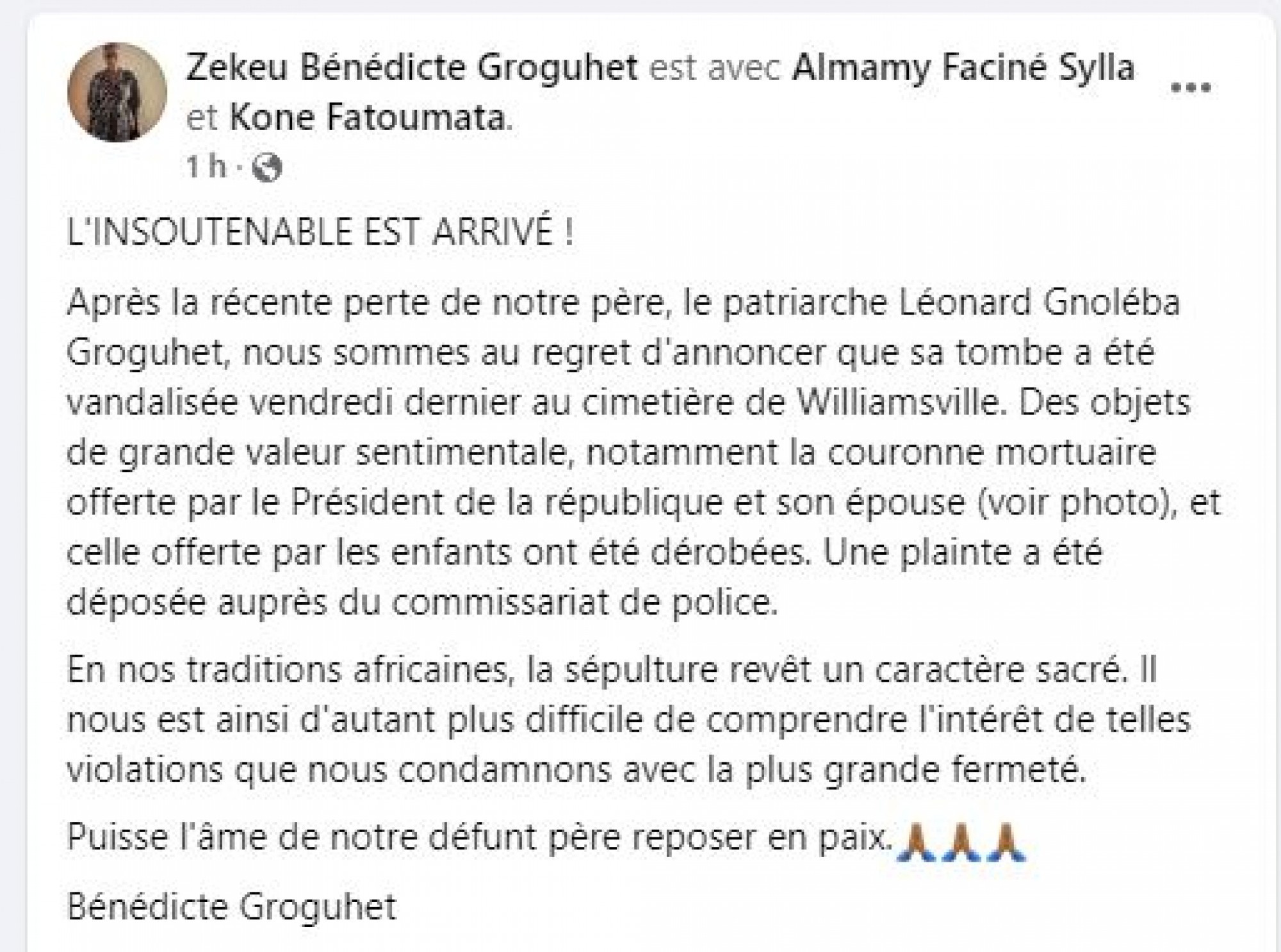 Côte d'Ivoire : Cimetière de Williamsville, après la tombe de Ben Soumahoro, celle de Leonard Groguhet profanée ?