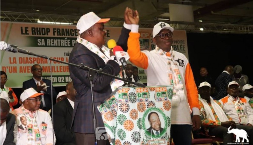 Adjoumani Kobenan Kouassi, porte-parole principal du RHDP a présidé ce week-end, l’entrée politique des militants de la diaspora Paris en présence de Assétou Gon, épouse du Premier ministre et de plusieurs autres cadres de cette formation politique dont Diaby Lanciné, Directeur Exécutif chargé des délégations étrangères.
