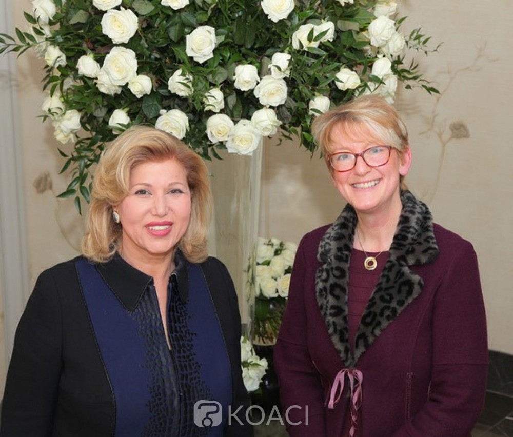 En marge du sommet sur l’investissement Royaume-Uni-Afrique, Madame Dominique Ouattara, Première Dame de Côte d’Ivoire a eu une séance de travail avec Madame Jennifer Townson, responsable en charge de l’immigration et de l'esclavage moderne au ministère britannique des affaires étrangères et du Commonwealth, le lundi 20 janvier 2020 à l’hôtel Corinthia à Londres.