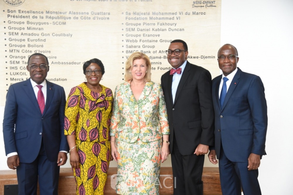 M. Akinwumi Adesina, Président de la Banque Africaine de Développement (BAD) a visité l’Hôpital Mère-Enfant Dominique Ouattara de Bingerville, le lundi 09 mars 2020. Le Président de la Bad en compagnie de Madame Dominique Ouattara Présidente de la Fondation Children Of Africa a pu découvrir lors d’une visite guidée, le plateau technique de dernière génération et le personnel hautement qualifié de cet hôpital spécialement dédié au couple mère-enfant.