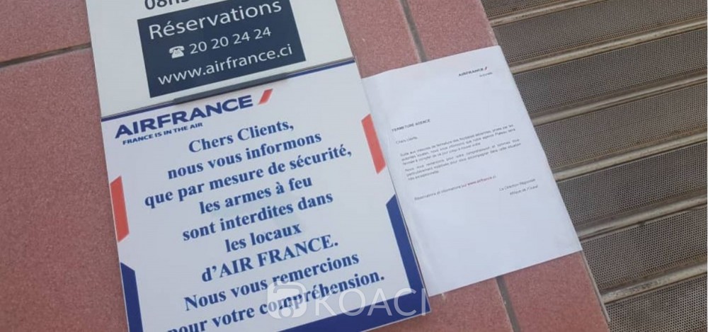 Message placardé devant l'agence Air France à Abidjan (ph KOACI)