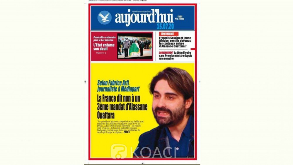 Dans sa parution de ce jour le quotidien « Aujourd’hui » journal proche de l’opposition ivoirienne a révélé que le Co-responsable du pôle « enquêtes » de Mediapart a déclaré que la France s’opposait à un troisième mandat du président sortant, Alassane Ouattara ».