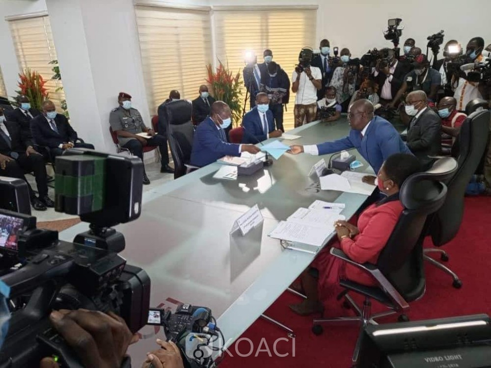 C'est le Secrétaire permanent de l'institution chargée de l'organisation des élections en Côte d'Ivoire qui a réceptionné le dossier de candidature du président sortant qui était accompagné de plusieurs membres du Gouvernement dont le Premier ministre, Hamed Bakayoko.