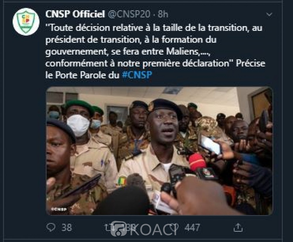 ''Toute décision relative à la taille de la transition, au président de transition, à la formation du gouvernement, se fera entre Maliens,.., conformément à notre première déclaration'' Précise le Porte-Parole le Colonel Wague.