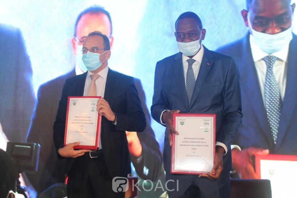 Le ministère de la Promotion de la riziculture et l’Office Chérifien des phosphates ont signé aujourd'hui à Abidjan, un protocole d'accord en vue d'accélérer la mise en de la stratégie nationale de développement de la riziculture (SNDR) 2020-2030 initiée par le gouvernement ivoirien.