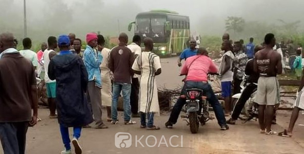 La voie d'accès principale à cette ville du Guémon a été bloquée par un groupe de jeunes qui y ont incendié des camions de transport de bauxite et placé des blocs de bois au préalable sur l'axe de Duékoué.