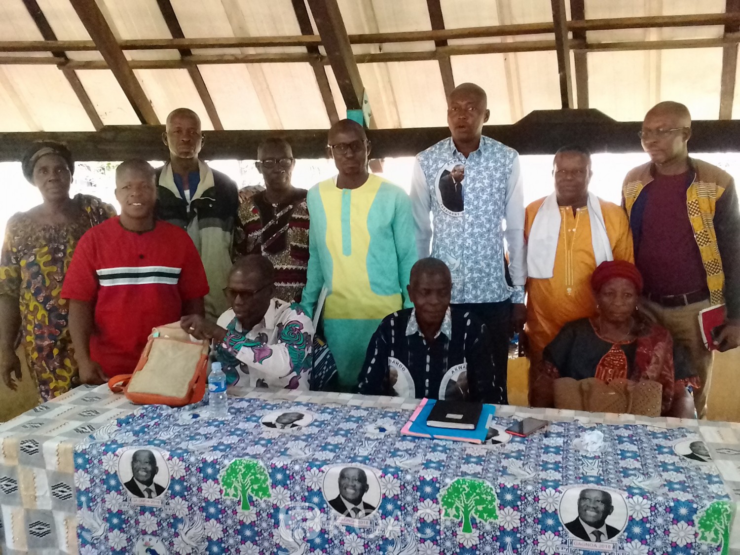 Les fédéraux FPI du Gbêkê autour de Konan N'Dri après la rencontre (ph KOACI)