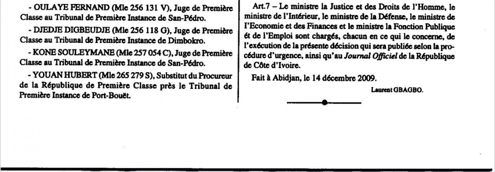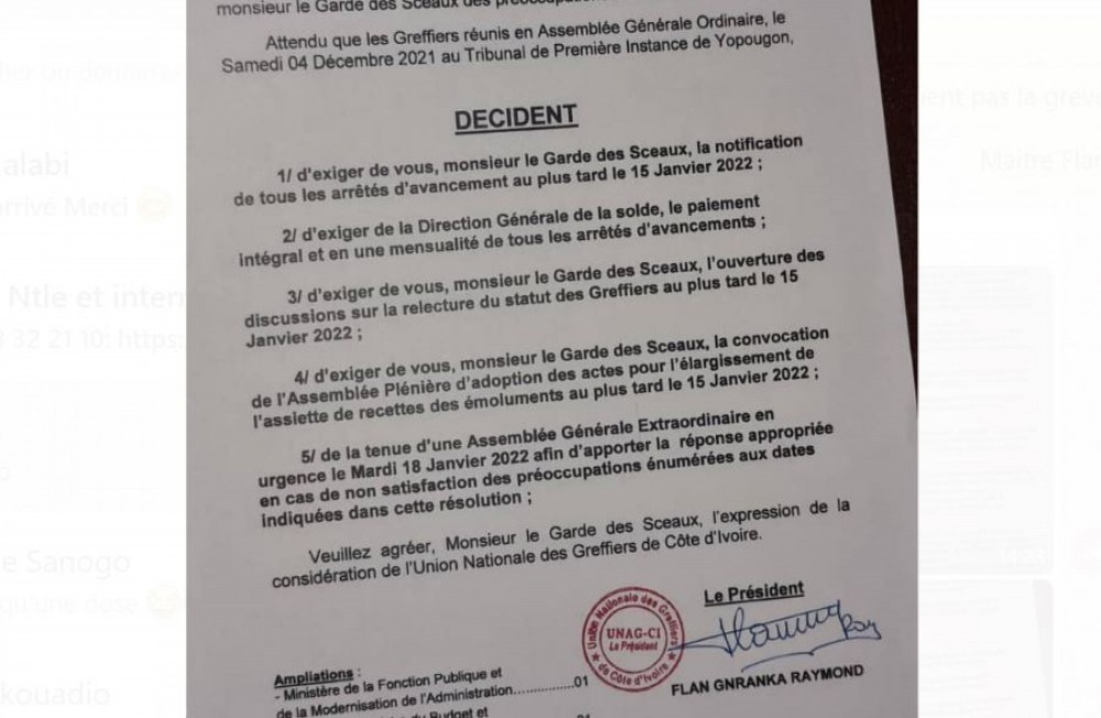 Nous apprenons aussi qu'informé de la situation, le garde des sceaux entendrait prendre des mesures vigoureuses qui pourraient rappeler celles des révocations de greffiers, prises en 2009 par Laurent Gbagbo.