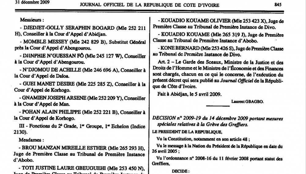Côte d'Ivoire : Grève des greffiers des tribunaux et Cours d'appel, vers la dureté de Gbagbo en 2009?