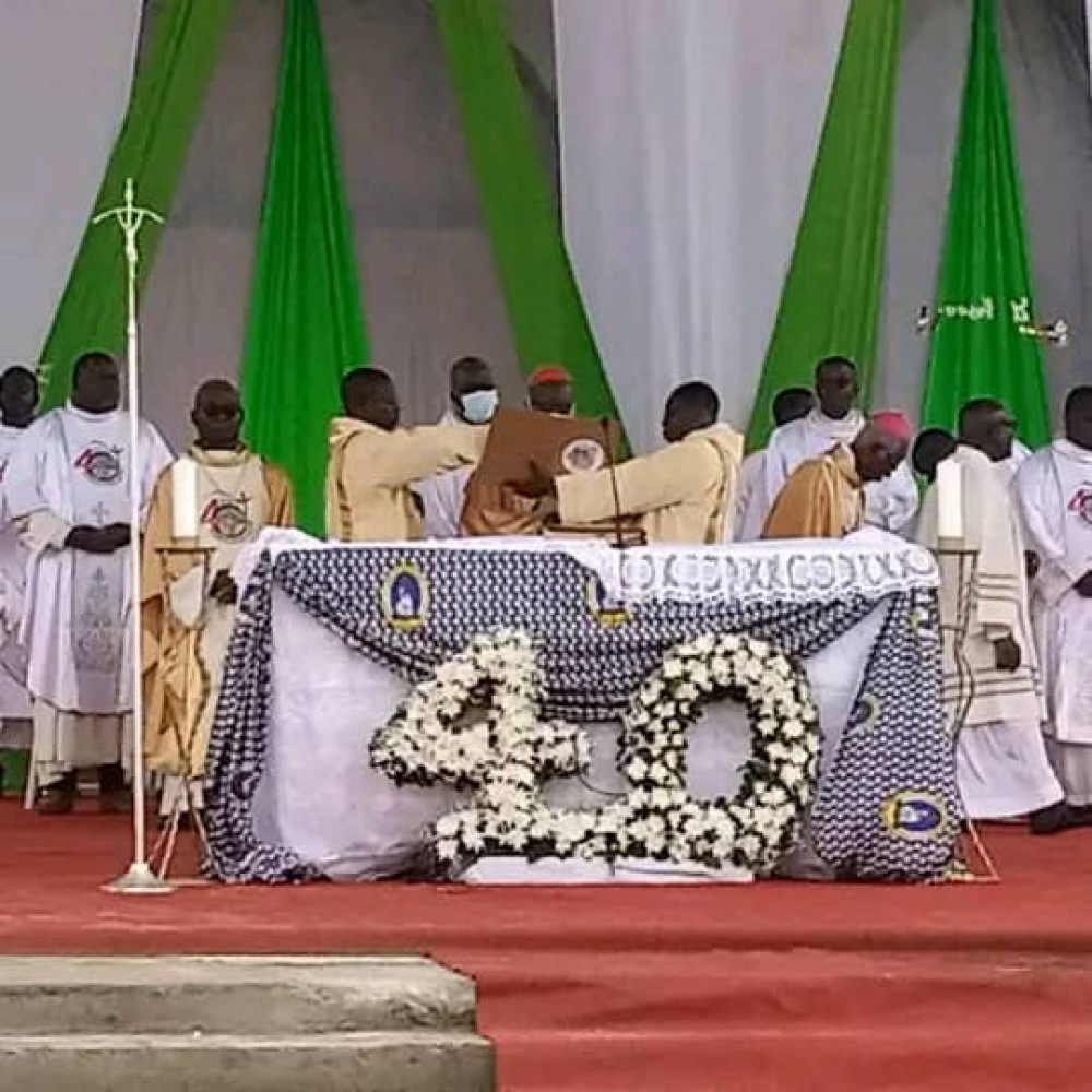 Le diocèse de Grand-Bassam, a célébré ce dimanche 26 juin 2022, ses noces d'émeraude, correspondant à ses 40 ans d'existence. A la place Saint-Esprit de Mockey ville où s'est déroulée la messe d'action de grâce présidée par l'archevêque métropolitain d'Abidjan, en l'occurrence Monseigneur Jean-Pierre Cardinal Kutwa, des fidèles catholiques dudit diocèse sont venus très nombreux prendre part à l'événement. Des autorités politiques, administratives et coutumières ont également rehaussé de leur présence cette célébration. Au nombre de ceux-ci, le ministre des Sports, Paulin Claude Danho, représentant le premier ministre Patrick Achi, l'ex-vice-président de la république de Côte d'Ivoire, Daniel Kablan Duncan, par ailleurs fils de Grand-Bassam, le premier magistrat de cette ville, le député-maire Jean-Louis Moulot et la ministre Christine Adjobi.