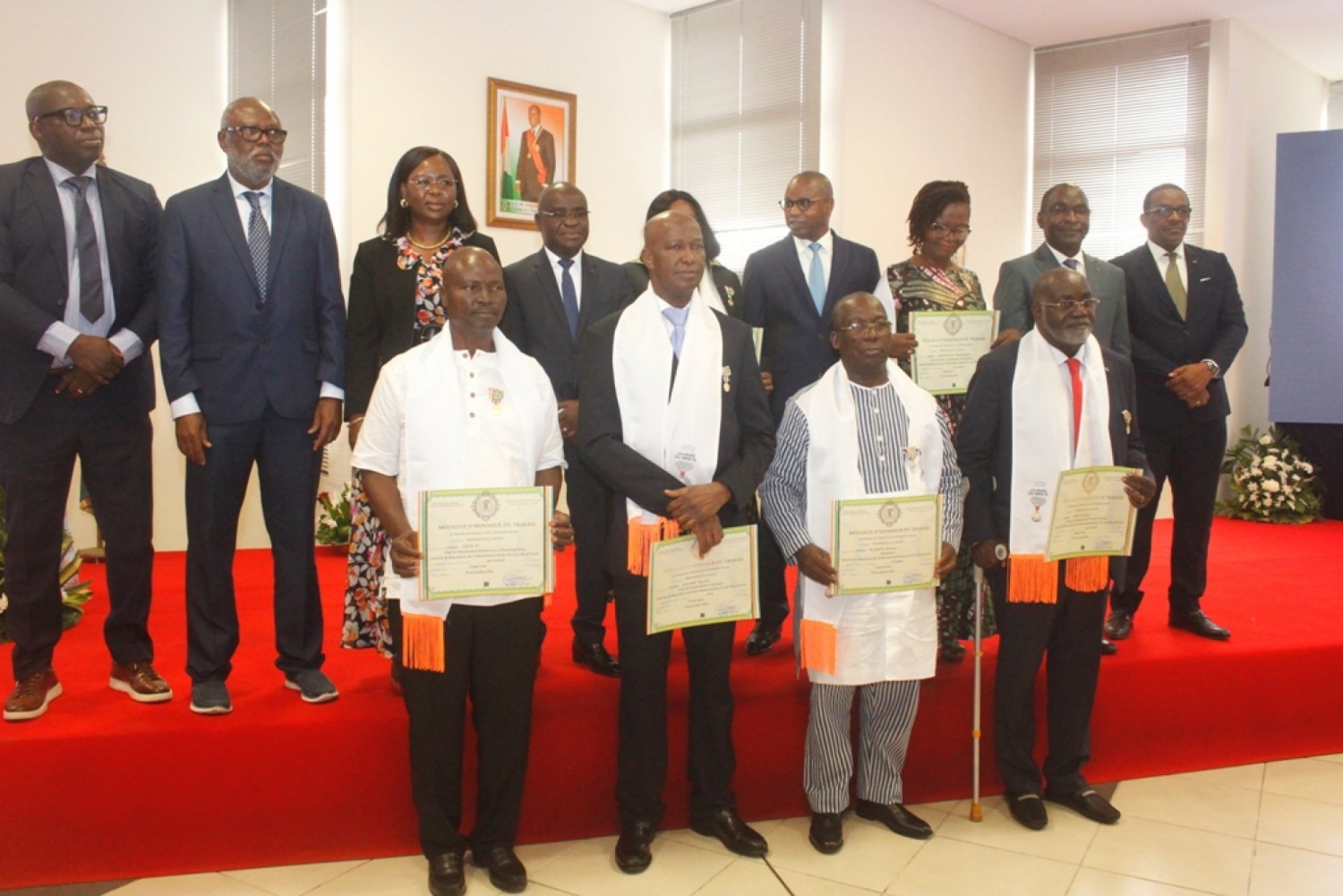 Il y a lieu de rappeler que, ce sont six (06) travailleurs qui auront reçu, la médaille d’honneur du Travail, laquelle sera fonction de leur ancienneté et cinq (05) qui auront été célébrés autrement, sans décoration.