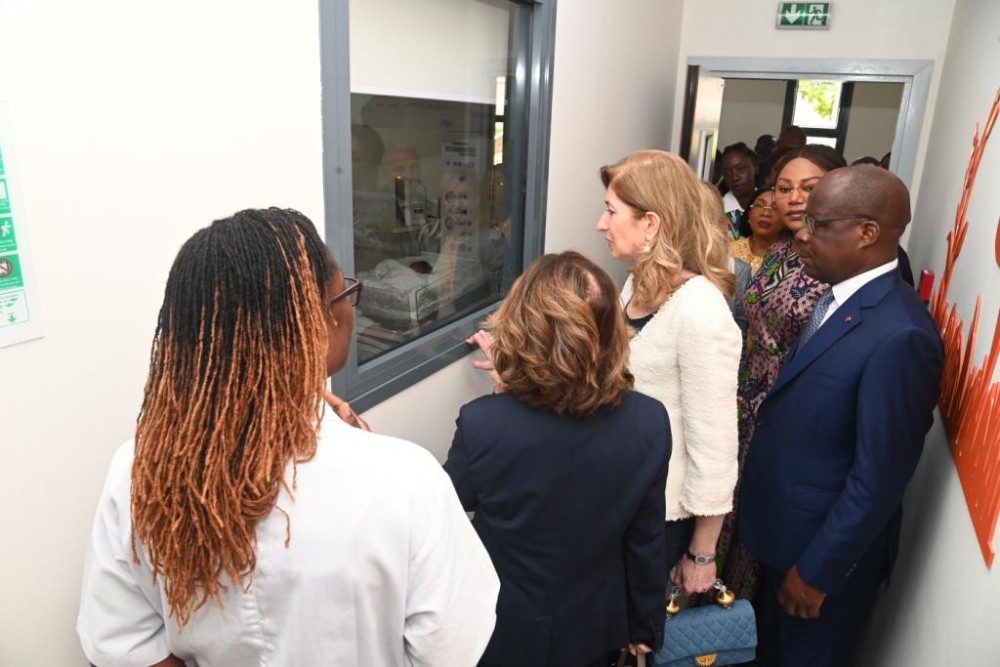 Accompagnée de Madame Nadine Sangaré, M. Hachim Diop, Directeur Général et de Madame Sylvia da Silva Anoma, Directrice Médicale et Scientifique de l’HME de Bingerville, Madame Laura Mattarella a visité successivement les services de consultation pédiatrique, la néonatalogie, l’assistance sociale, l’amphithéâtre, le restaurant et la salle d’éveil en oncologie pédiatrique. Lors de chacune des étapes de cette visite, Madame Mattarella a montré un vif intérêt au fonctionnement des services. N’hésitant pas à poser ses préoccupations au personnel de l’HME. C’est donc satisfaite que sa visite a pris fin par la salle du conseil où elle s’est entretenue en privé avec Madame Nadine Sangaré, Directrice de la Fondation Children Of Africa, M. N’Gou Pierre Dimba, Ministre de la Santé, de l’Hygiène Publique et de la Couverture Maladie, ainsi que le personnel de l’HME de Bingerville.