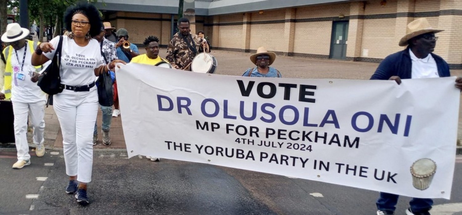 Olusola Oni, le seul candidat du Parti Yoruba, a perdu le vote dans la circonscription de Peckham pour les élections législatives britanniques de 2024 et arrive loin derrière la candidate Miatta Fahnbulleh, du Parti Travailliste, qui a recueilli 22 813 voix soit 58,8 %.