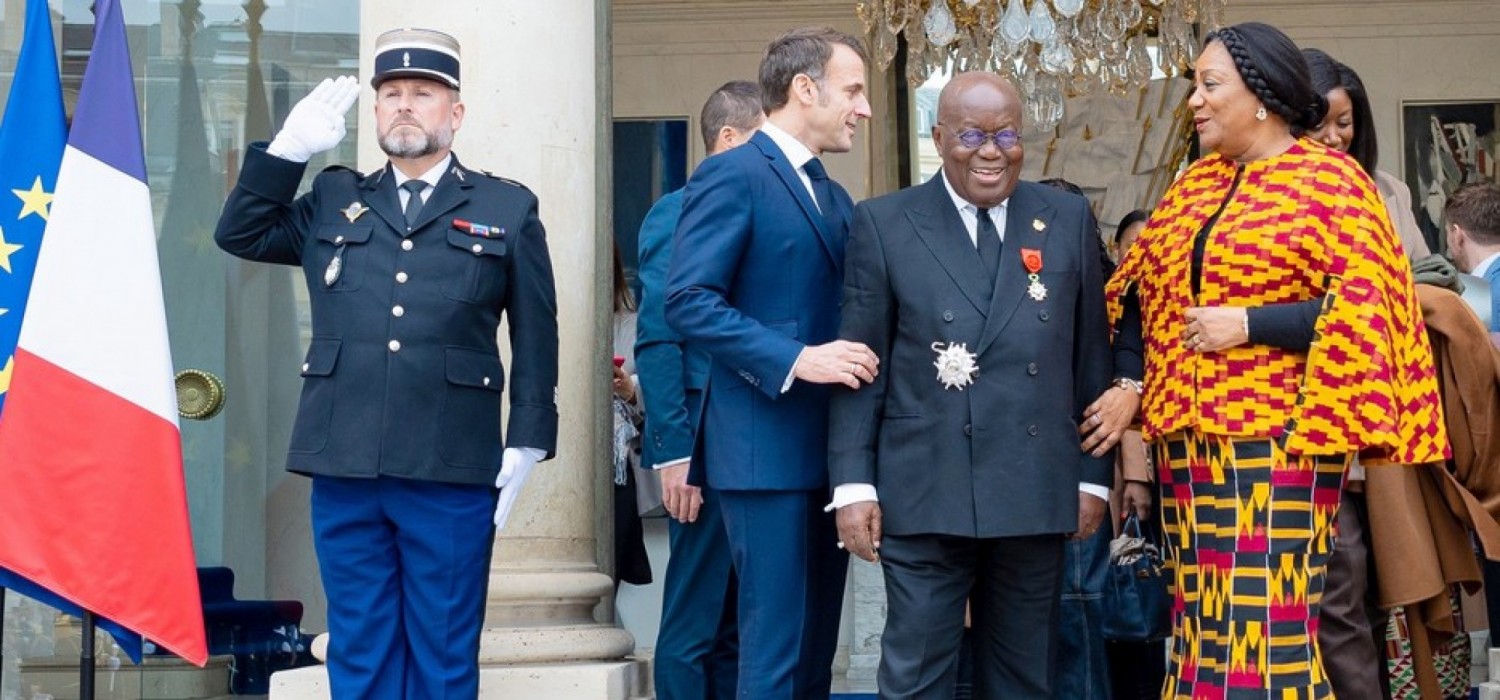 Le Président du Ghana, Nana Akufo-Addo, a reçu le prestigieux titre de Grand Officier de la Légion d’Honneur des mains du Président Emmanuel Macron de la France. La Légion d’Honneur décernée par le Président de la République française est l'un des symboles les plus vénérés de l'appréciation et du respect de la France.