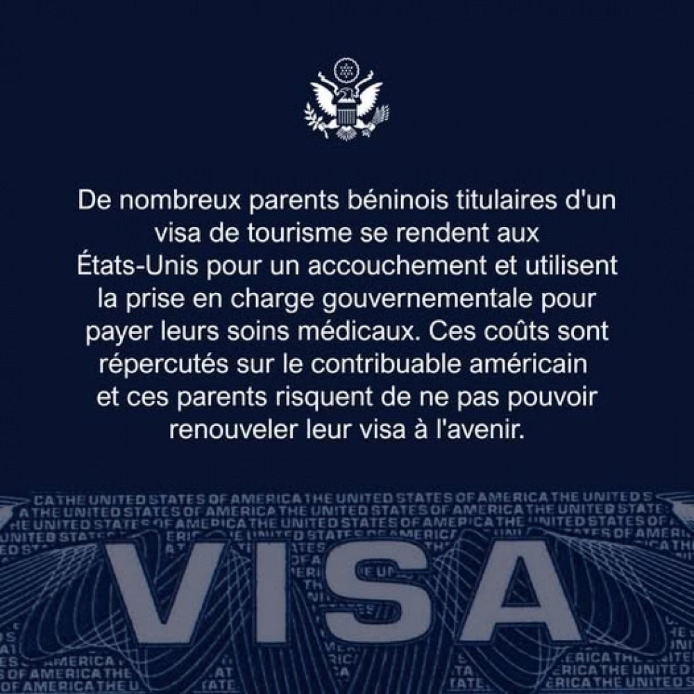Brian Shukan s'est exprimé via la page Facebook de l'ambassade en ces termes : "De nombreux parents béninois titulaires d'un visa de tourisme se rendent aux États-Unis pour un accouchement et utilisent la prise en charge gouvernementale pour payer leurs soins médicaux. Ces coûts sont répercutés sur le contribuable américain et ces parents risquent de ne pas pouvoir renouveler leur visa à l'avenir. "