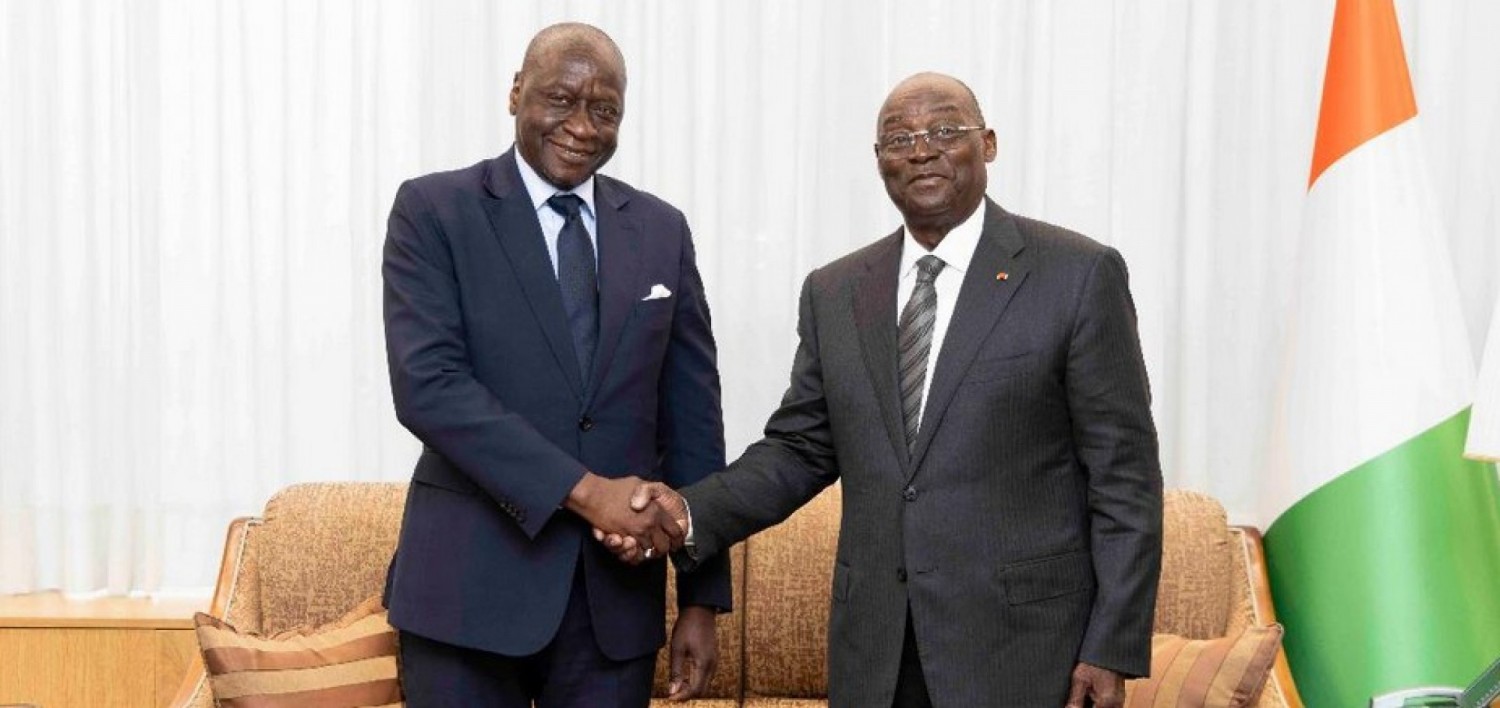 Le VP Tiémoko Meyliet et Ousmane Diagana de la Banque Mondiale ce mercredi à Abidjan (DR)