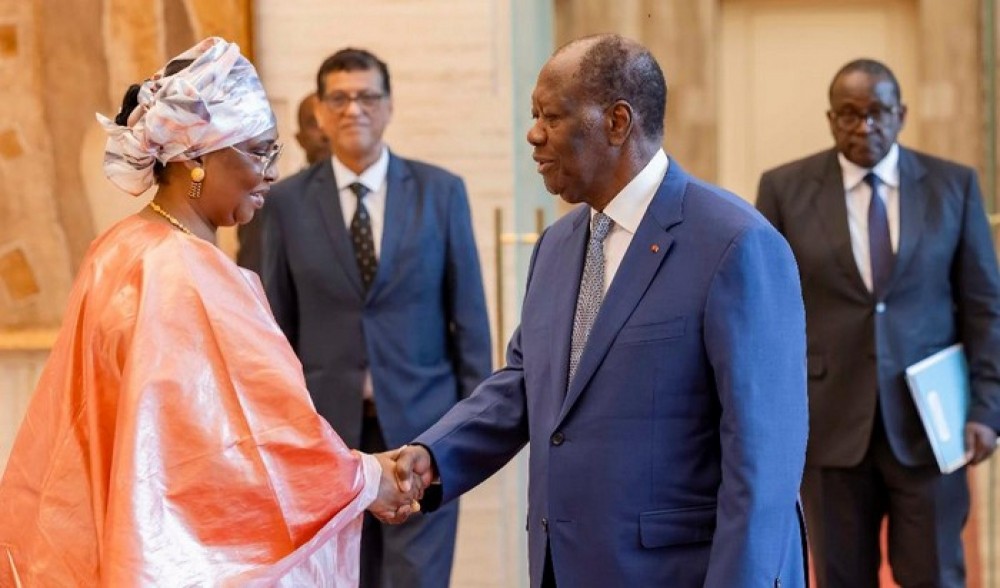 Selon une note de la présidence ivoirienne, Coumba Ba, a remercié le Chef de l’État pour son soutien au candidat de la Mauritanie lors de l'élection du Président de la Banque Africaine de Développement, et évoqué le renforcement des relations bilatérales entre la Côte d’Ivoire et la Mauritanie.