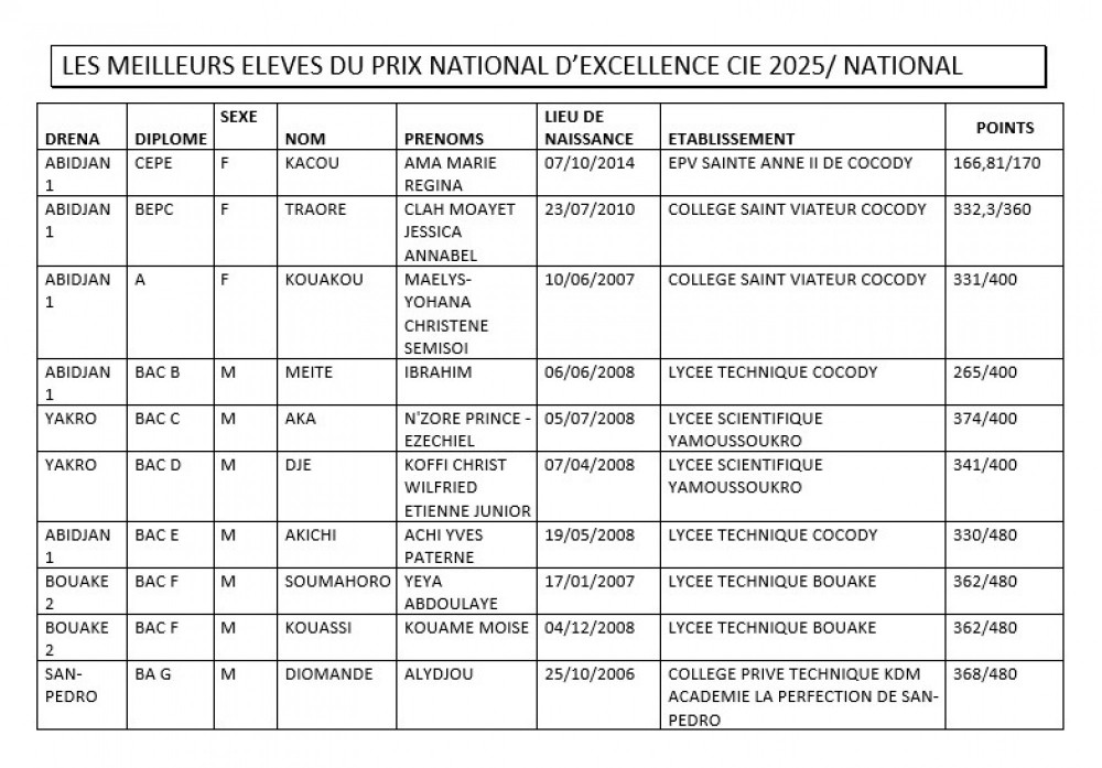 Cette distinction, devenue une tradition nationale, vise à encourager l’effort, la discipline et la persévérance. Elle illustre la volonté de la CIE de contribuer, aux côtés de l’État, à la promotion d’une jeunesse instruite et ambitieuse. Depuis son lancement, près de 513 élèves ont déjà été distingués. Ces lauréats, venus de toutes les régions de Côte d’Ivoire, incarnent la fierté de leurs villes, de leurs familles, et du pays tout entier.