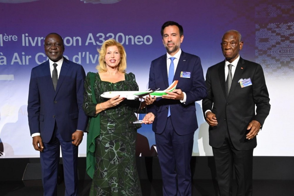 La compagnie aérienne nationale Air Côte d'Ivoire a réceptionné, ce mercredi 03 septembre 2025 à Toulouse, en France, son tout premier avion de type Airbus A330-900neo. C'était au cours d'une cérémonie sympathique, belle en couleur et pleine en émotion, qui a enregistré la présence de Madame Dominique OUATTARA, Première Dame de Côte d'Ivoire, avec à ses côtés le Ministre des Transports Amadou KONE, les Ministres Amadou COULIBALY de la Communication et Françoise REMARCK de la Culture et de la Francophonie.