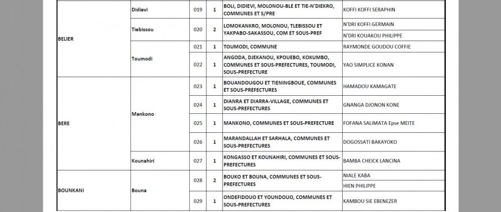 Fait marquant constaté dans la liste, le Vice-président Tiémoko Meyliet Koné se présentera lui pour la première fois à une élection. Le numéro deux du Pays sera candidat chez lui, à Tafiré, commune et sous préfecture. Les poids lourds Téné Birahima (à Abobo, ndlr), Anne Ouloto (Touleupleu, ndlr) ou encore Adama Coulibaly (Dimbokro, ndlr), Mamadou Touré (Daloa, ndlr), Adjoumani (Tanda, ndlr) et Amédé Kouakou (Divo, ndlr), sont, eux, tous également candidats.