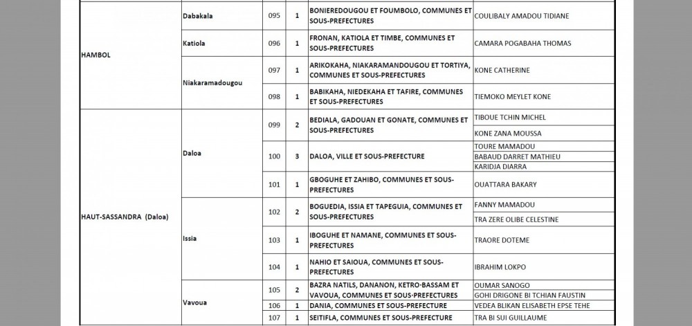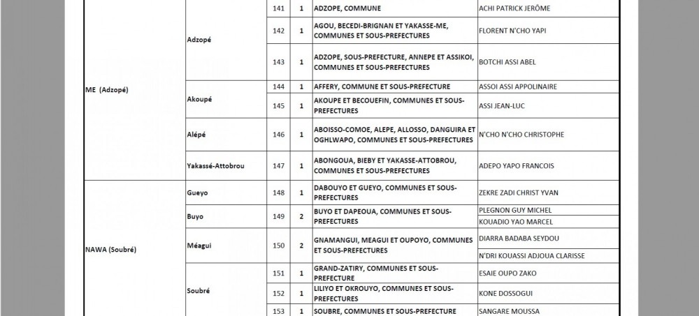 À Dabou, la situation a également évolué. Si le ministre Essis Esmel Emmanuel avait d’abord été pressenti pour représenter le parti, de nouvelles informations indiquent qu’il aurait finalement été remplacé par Metch Adjé Silas. Ce changement, non encore confirmé officiellement par la direction du parti, reflète les ajustements de dernière minute opérés avant la publication définitive de la liste.