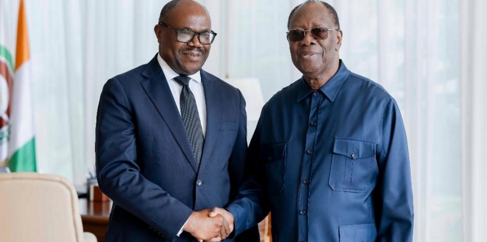 Moins de vingt-quatre heures après sa prestation de serment, le lundi 8 décembre 2025, en présence de nombreux chefs d’État et de gouvernement, le Président Alassane Ouattara a enchaîné, ce mardi 9 décembre, une série d’audiences à sa résidence de Cocody Riviera-Golf. Trois personnalités étaient au programme : Dr Justin Nsengiyumva, Premier ministre du Rwanda, Mme Anna Bjerde, Directrice générale des Opérations de la Banque mondiale, et Mme Nonceba Losi, envoyée spéciale du Président sud-africain Cyril Ramaphosa.