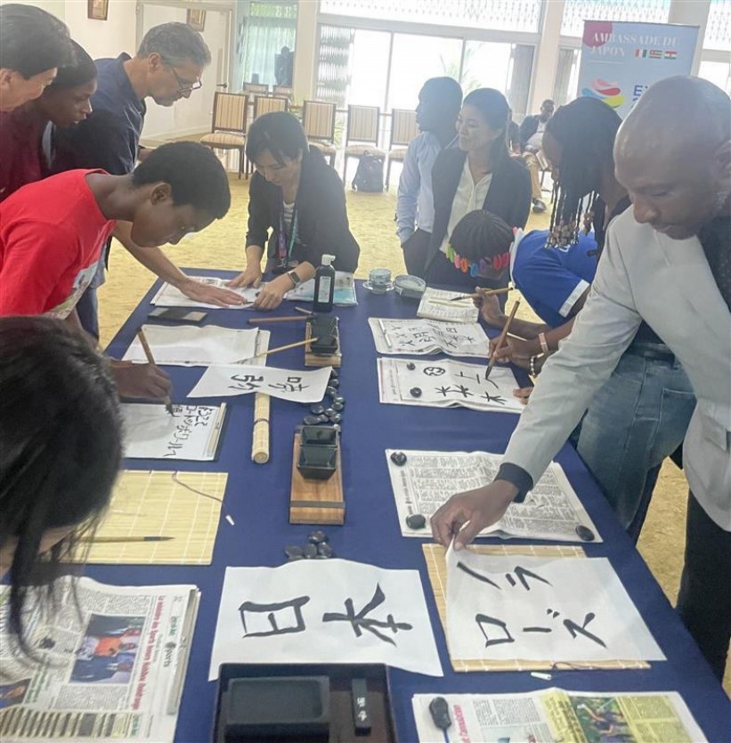 Après quelques échanges, ceux qui voulaient mieux apprendre la calligraphie ont participé à un atelier animé par Maître Kakushô. Chacun était libre d’exprimer ce qu’il ressentait à travers les écritures. La conférence a réuni des chefs d’autorités locales, des représentants du ministère de la Culture et de la Francophonie, du ministère de l’Éducation nationale, de l’Alphabétisation et de l’Enseignement technique, des artistes ivoiriens, ainsi que des étudiants de l’UFHB et de l’Université de Tsukuba, qui ont récemment signé un protocole d’accord d’échange académique.