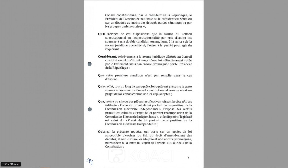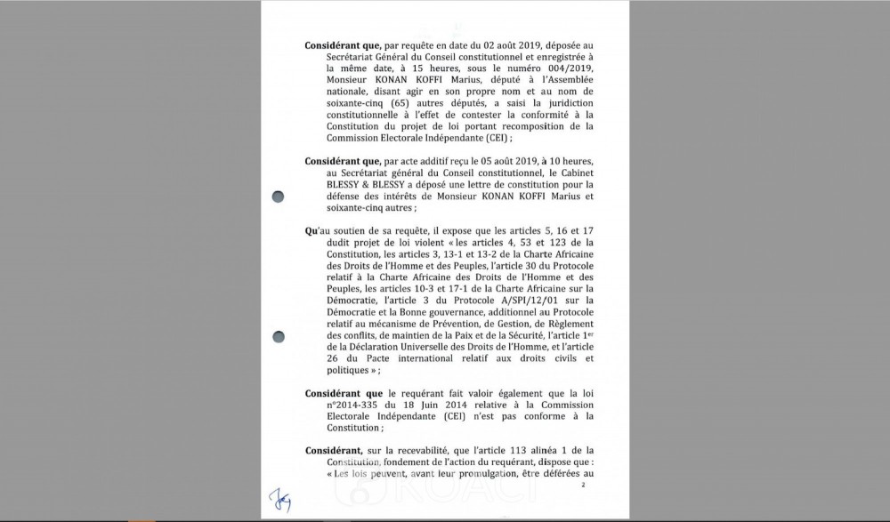 Côte d'Ivoire: Requête sur la loi de recomposition de la CEI, décision du Conseil Constitutionnel