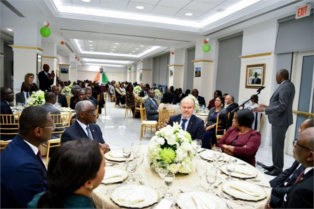 Faisant suite aux allocutions de l’Ambassadeur de Côte d’Ivoire aux Etats-Unis et du Président de l’Union Fraternelle des Ivoiriens (UFI), le Premier Ministre qui a remercié l’Ambassadeur et son épouse pour l’organisation de ce diner, a salué tous les membres de la communauté ivoirienne pour leur contribution à l’oeuvre de construction nationale.