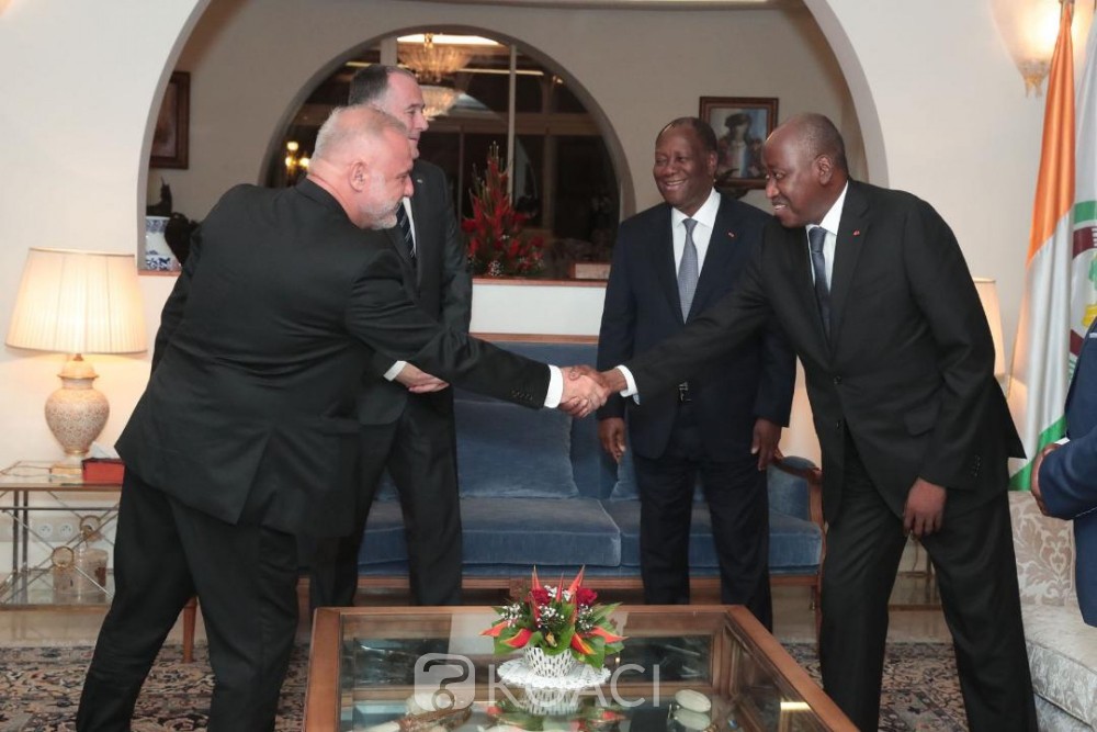 Il s’est, par ailleurs, félicité de la signature de trois importants Accords au cours de cette visite à Berlin, dont le premier concerne un appui budgétaire de 100 millions d’euros accordé par l’Allemagne ; le second porte sur la mobilisation d’un financement de 500 millions d’euros auprès de la Banque KFW IPEX, destiné à financer deux projets à réaliser par l’entreprise allemande GAUFF et au renforcement des capacités de notre Génie militaire, et enfin le troisième, relatif à l’installation d’une Représentation commerciale allemande en Côte d’Ivoire.