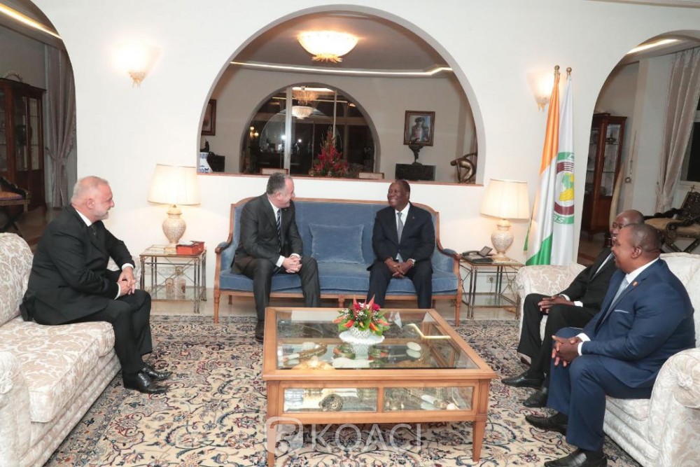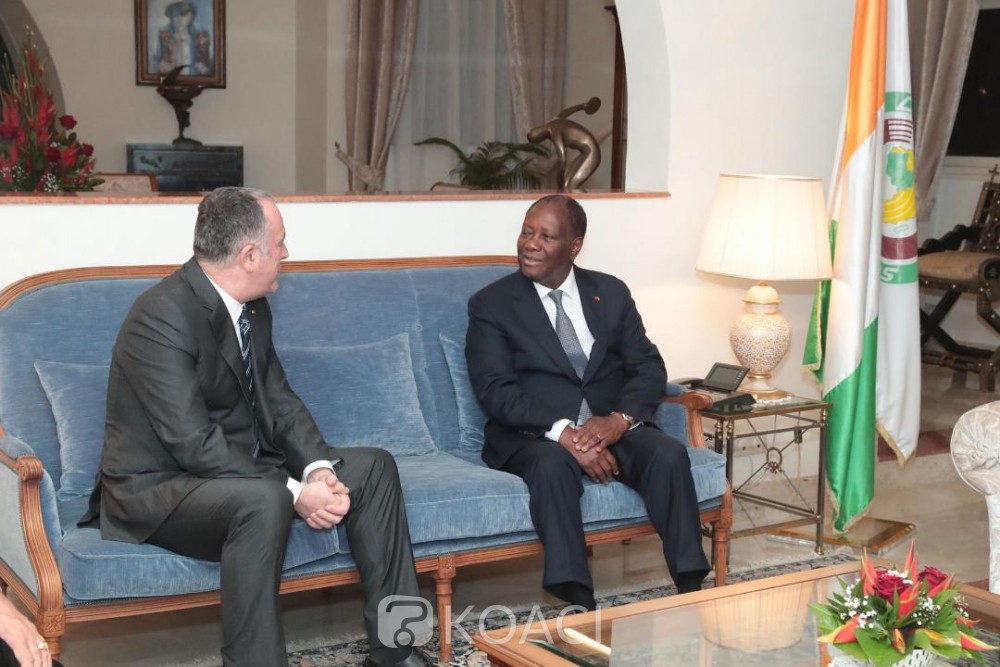 Le Président de la République, S.E.M. Alassane OUATTARA, a échangé ce samedi 23 novembre, à sa Résidence sise à la Riviera – Golf, avec le Ministre français de l’Agriculture et de l’Alimentation, M. Didier GUILLAUME.
