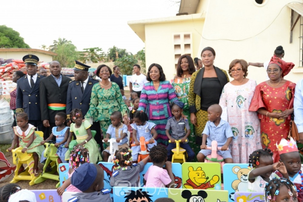 Madame Dominique Ouattara, Présidente de la Fondation Children Of Africa a fait des dons en vivre et non vivre aux structures de protection de l’enfance de la région du Hambol. Ainsi, profitant de la visite d’état du Président Alassane Ouattara qui se déroule du 27 au 30 novembre 2019, Madame Dominique Ouattara a tenu à apporter sa contribution à la protection des enfants, le jeudi 28 novembre 2019, dans la région du Hambol. A cet effet, l’épouse du chef de l’Etat a initié une cérémonie de remise de dons au centre social de Katiola en présence des responsables des structures de protection des enfants et des populations sorties en grand nombre.