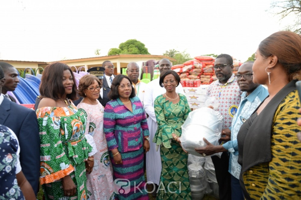 Madame Dominique Ouattara, Fondatrice de Children Of Africa était représentée par Madame Bakayoko Ly-Ramata, Ministre de la Femme, de la Famille et de l’Enfant. La représentante de Madame Dominique Ouattara avait à ses côtés lors de cette cérémonie de remise de dons Madame Myss Belmonde Dogo, secrétaire d’Etat auprès du Ministre de la Femme, de la Famille et de l’Enfant ; Madame Virginie Aya Touré, Députée d’Oumé ; Madame Yao Patricia Sylvie, Directrice de Cabinet de la Première Dame et bien d’autres personnalités.