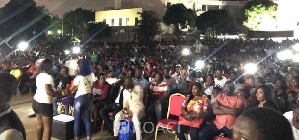 Bebi Philip sur scène sur l'esplanade du palais de la culture de Treichville et une vue de son public (Ph KOACI)