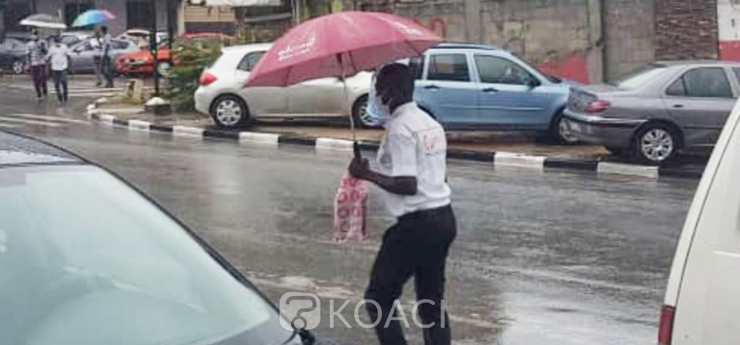 Abidjan, masqués sous la pluie, ce mardi au Plateau (ph KOACI)