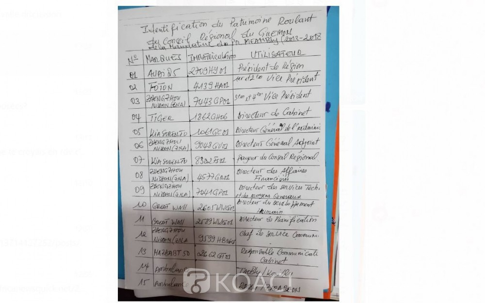 Car il lui serait "difficile de remplir convenablement les tâches qui me (lui, ndlr) sont dévolues en cette qualité puisque car n'étant pas doté d'un véhicule de commandement.", "Pour mieux exercer pleinement mes (ses, ndlr) devoirs dans la Région du Guémon, je viens par la présente solliciter de votre haute bienveillance, la mutation de l'achat de la quatrième ambulance à l'achat d'un véhicule de commandement.".