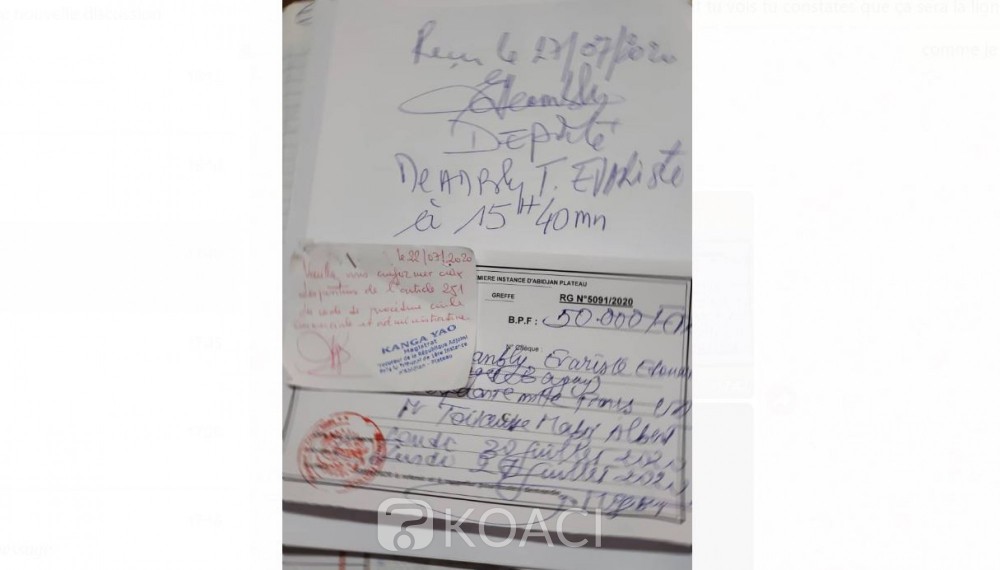 Cette dernière a été ensuite enrôlée sous la référence RGN 5091/2020 au greffe du Tribunal de 1ère instance d’Abidjan Plateau, en vue d’une audience programmée pour le jeudi 30 juillet 2020.