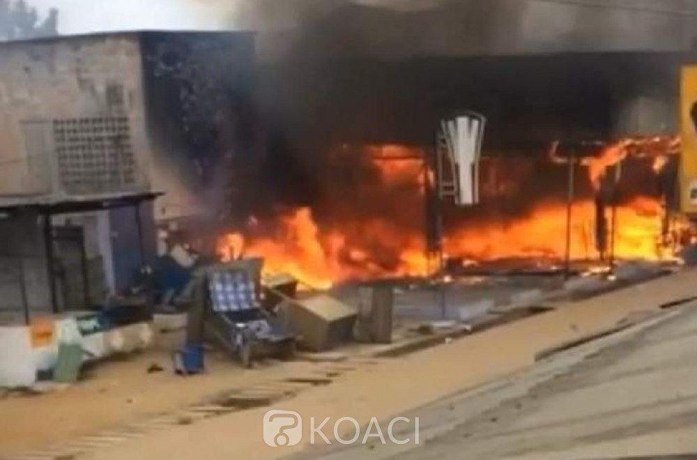 À Bonoua, petite ville à l'est d'Abidjan, des petits cars ont été incendiés, des commerces et des maquis ont été réduits en cendres.