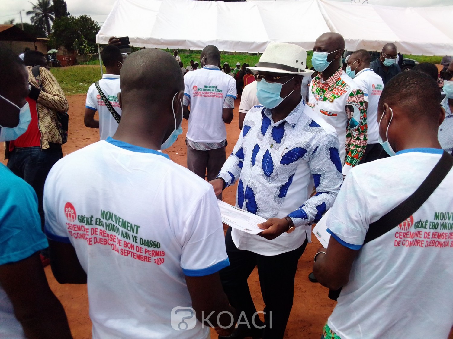 La place publique, jouxtant la brigade de gendarmerie de Djébonoua, a servi de cadre pour l'organisation de cette cérémonie de remise, qui a vu la participation de plusieurs cadres, responsables administratifs, autorités coutumières, guides religieux et population comme constaté sur place par KOACI. Les activités du mouvement Ebo Yokou Nan Ye Djasso, notons le, ont été lancées il y a environ un mois sur le boulevard du Palais du carnaval de Bouaké, au cours duquel lancement, selon le porte parole des bénéficiaires, « les leaders de jeunes de Bouaké que nous sommes, avons souhaité obtenir des bons de permis de conduire de notre parrain monsieur Jacques Assahoré.»