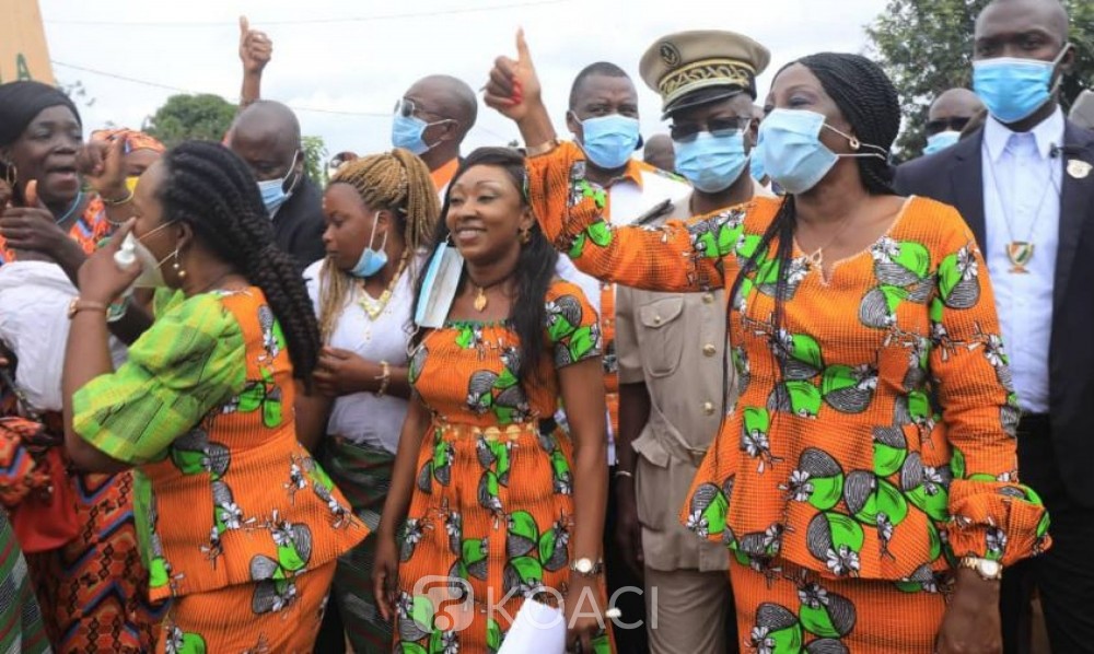Elle a rendu hommage aux jeunes et femmes pour leur esprit de civisme parce qu'ils n'ont suivi l'appel de l'opposition à manifester contre le 3ème mandat du Président Ouattara et leur a signifié qu'ils sont les priorités du président Alassane Ouattara.