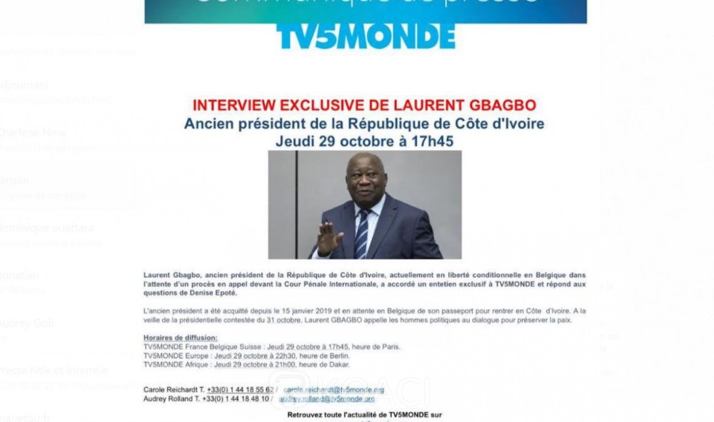 Nous y relevons que Laurent Gbagbo a répondu aux questions de Denise Epoté dans un entretien annoncé pour être diffusé ce jeudi 29 Octobre 2020.