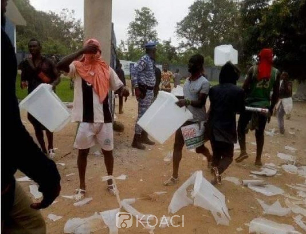 Enfin, parmi les petits incidents signalés, celui d'une voie sur laquelle des parties d'arbres découpés ont été disposées sur la chaussée du côté de l'axe Divo-Lakota (Ouest, ndlr), par ailleurs peu emprunté ce matin, ou celui de vandalisme de matériel éléctoral dans la petite ville de M'batto.