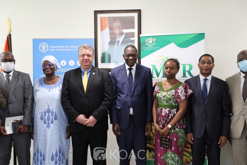 Une signature de convention sur le renforcement de capacités et de partage pour le développement des chaînes de valeur du riz a eu lieu à Abidjan entre le Gouvernement ivoirien, et l'Organisation des nations unies pour l'alimentation et l'agriculture(FAO).