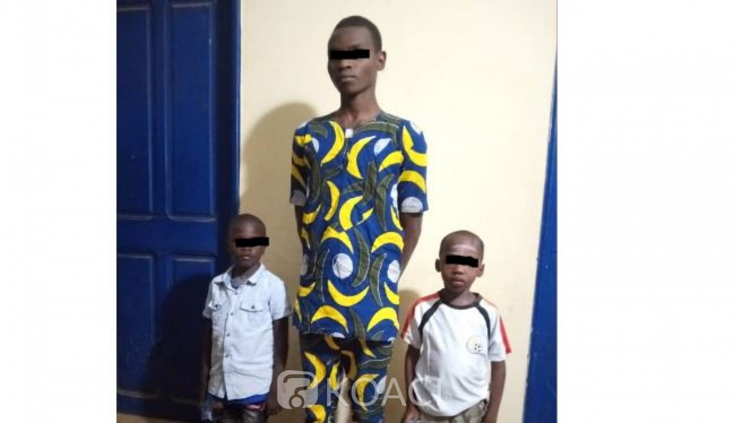 Ousmane Kéita, l'un des présumés kidnappeurs et les enfants de 6 ans (Ph KOACI)